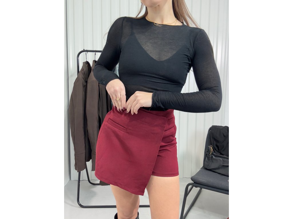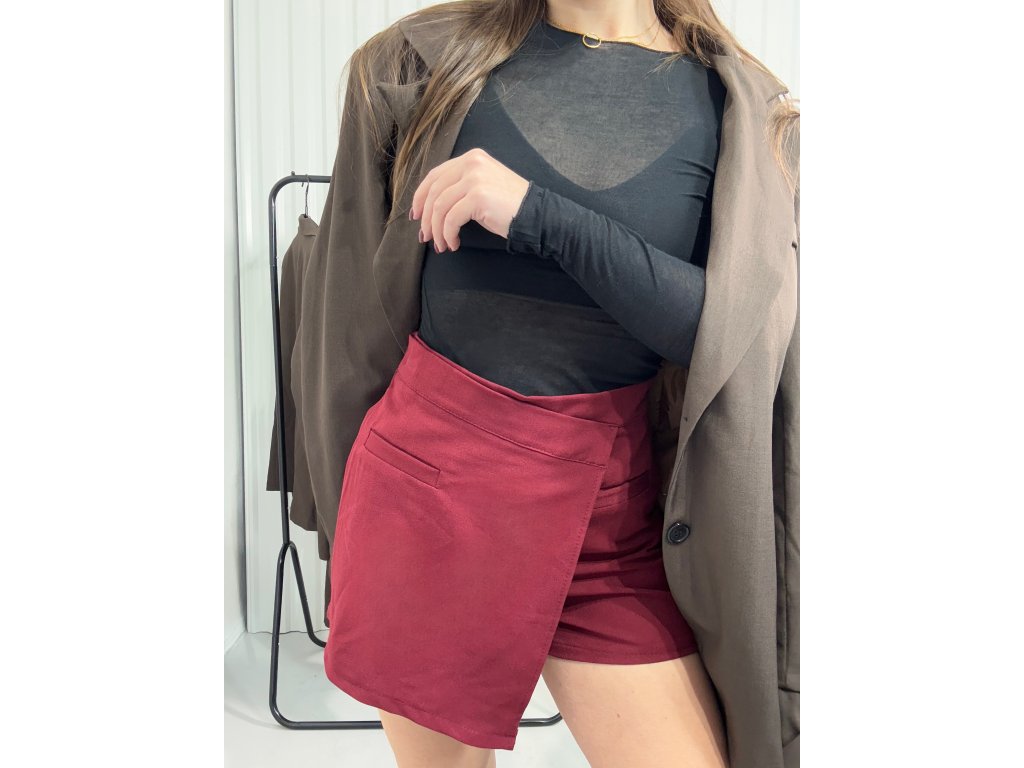 Skort v bordovej farbe,z predu preloženy vzadu klasiky kraťasový vzhľad